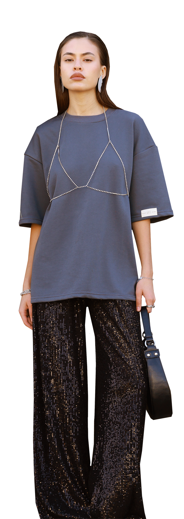 Эффектный микс casual-стиля и роскоши. Стиль casual шик — это когда базовая футболка приглушает акцентные брюки из пайеток.